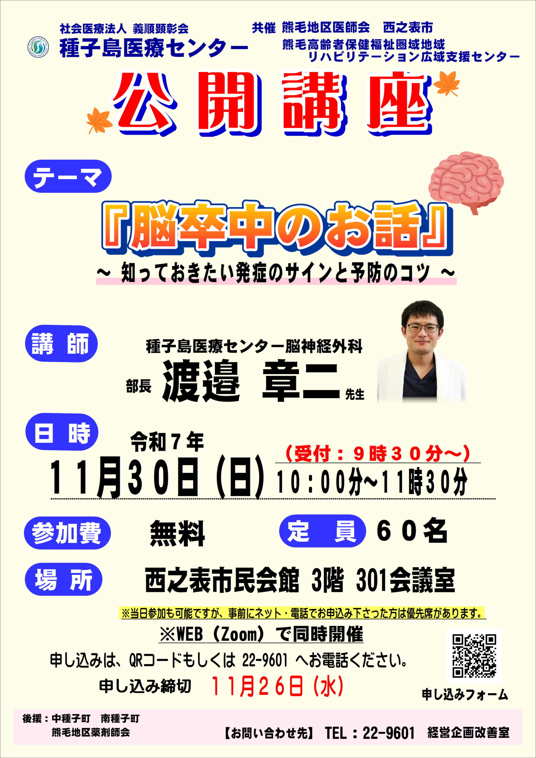 会場: 西之表市民会館 3階 定員:60名(先着順)